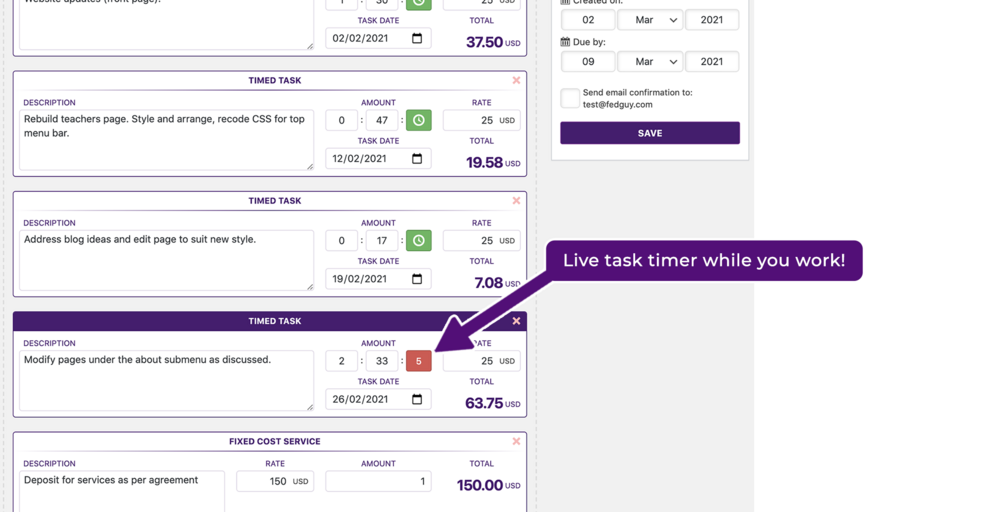 Use a task timer to add timed tasks to invoices.